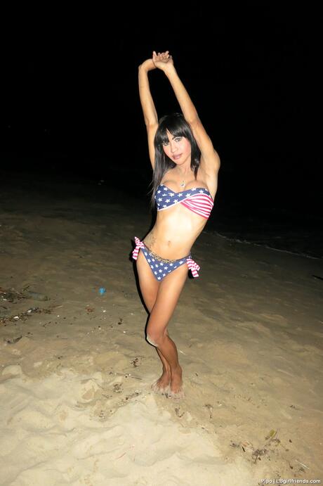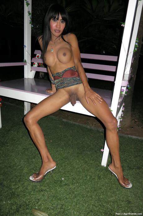 Ladyboy Gold: Sexy shemale Pook strips her bikini and shows her big tits and big dick
