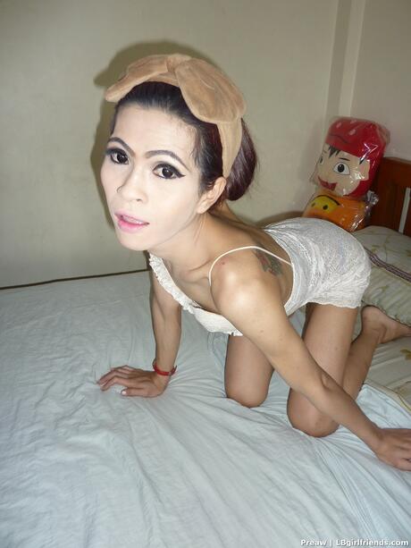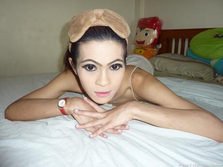 Ladyboy Gold: Sexy shemale Sunny 1 strips her lingerie off and shows her big dick