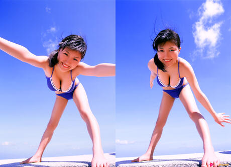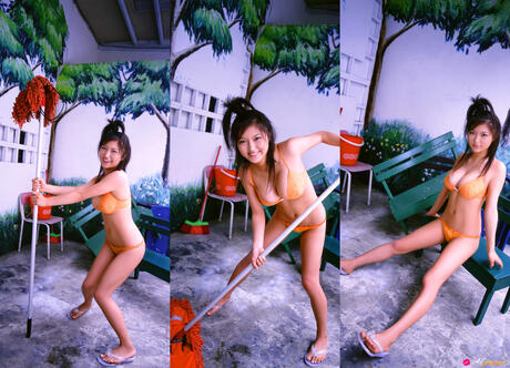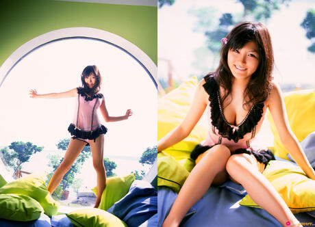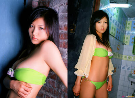 All Gravure: strips off her bikini and presents her amazing juggs and ass in the mirror.