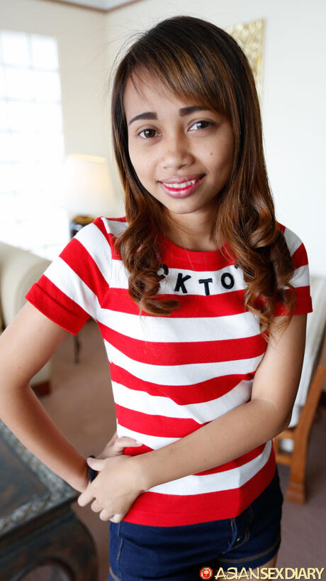 Asian Sex Diary: Stunning Asian teen Koi strips off her denim shorts and shows her pink pussy