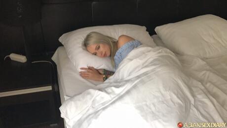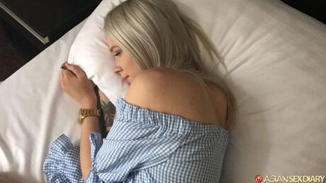 Asian Sex Diary: Stunning blonde Arteya Dee shows her ass and spreads her pussy in a solo