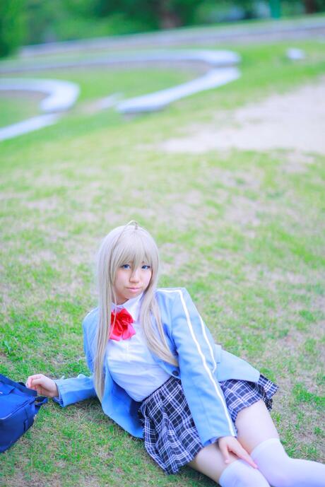 All Gravure: Stunning blonde Nyaruko shows her pink panties and spreads her pussy in the field