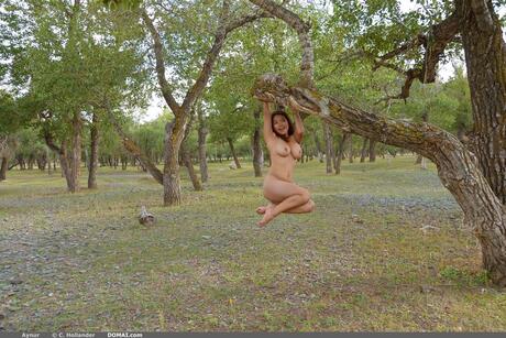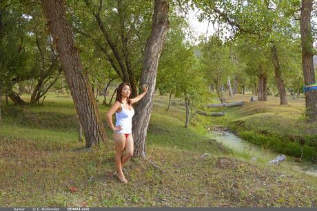 Domai: Stunning brunette Aynur takes off her white dress and presents her big boobs