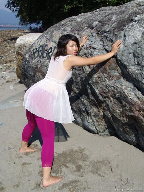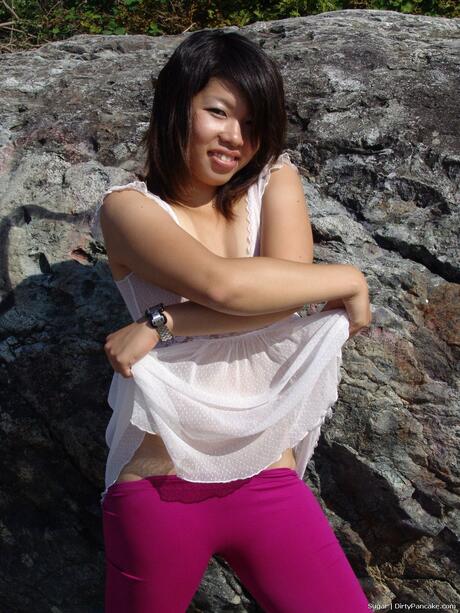Dirty Pancake: Stunning brunette Sugar strips naked and displays her hot booty in a solo