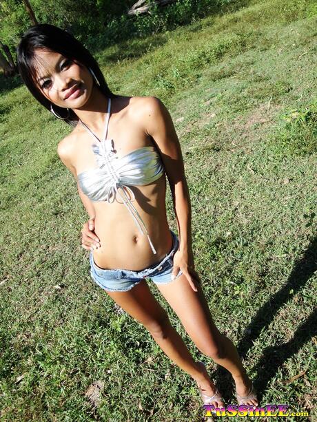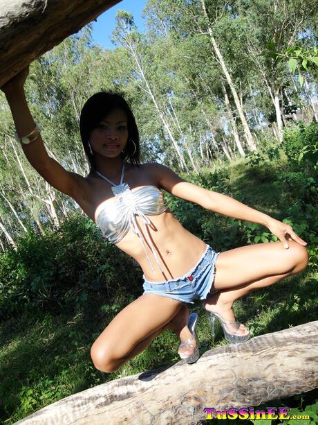 Tussinee: Stunning brunette Tussinee strips to her high heels and highlights her hot body