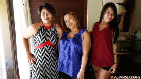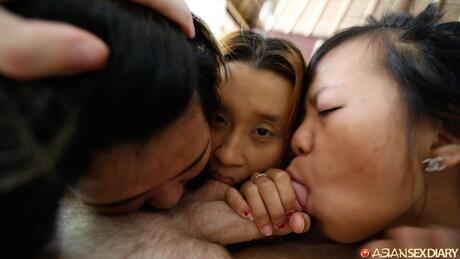 Asian Sex Diary: Stunning girls with big boobs and asses get naked and share a dick in a 3some