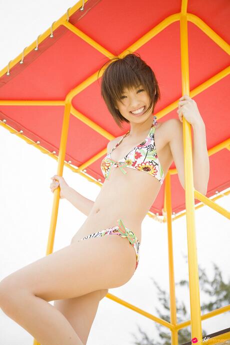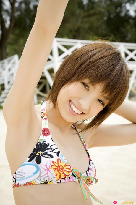 All Gravure: Stunning Japanese babe Akina Minami presents her hot ass and small tits poolside