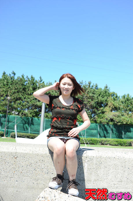 10musume: Stunning Japanese babe Emiri Asaka strips and toys her pussy in the backyard