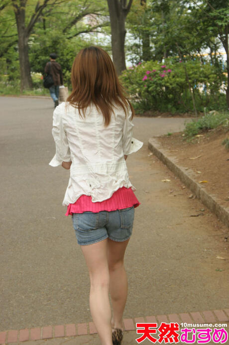 10musume: Stunning Japanese Mizusawa Rena strips and fingers her pussy on the stairs