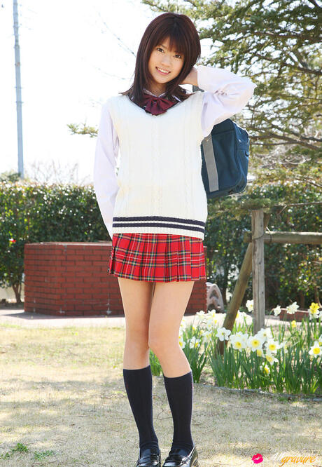 All Gravure: Stunning Japanese schoolgirl Risa Inoue strips and unveils her hot ass outdoors