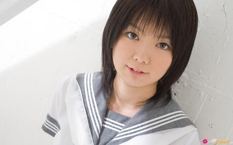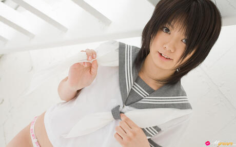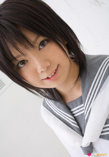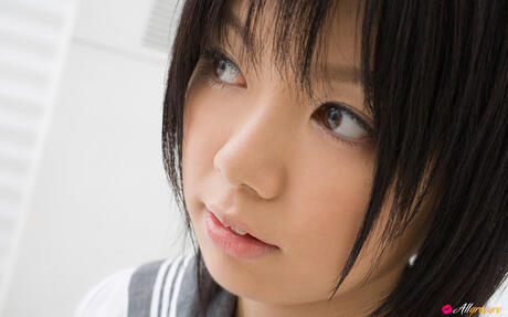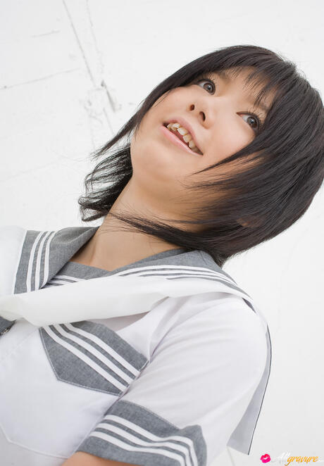All Gravure: Stunning schoolgirl Hikari strips her uniform and shows her pussy in a solo