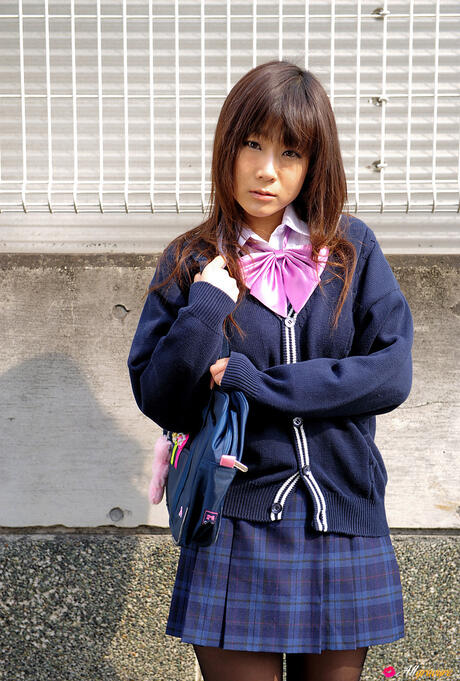 All Gravure: Stunning schoolgirl Mikoto Sakura strips her uniform and pantyhose to pose nude