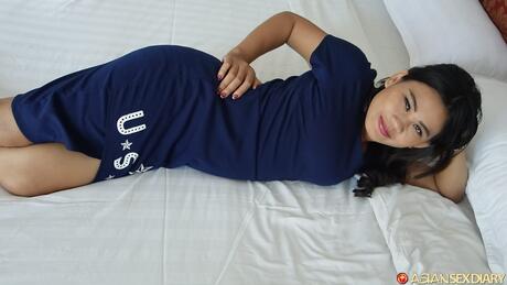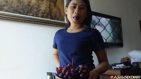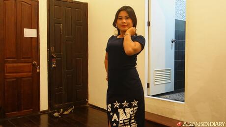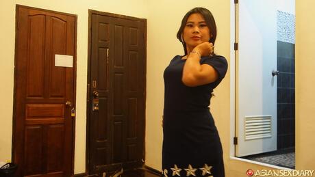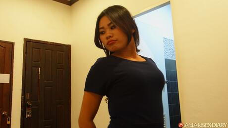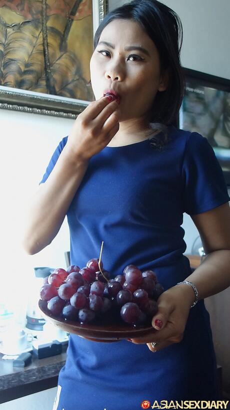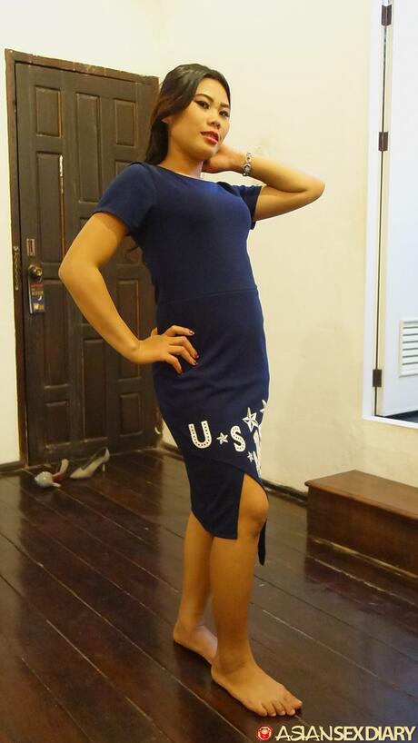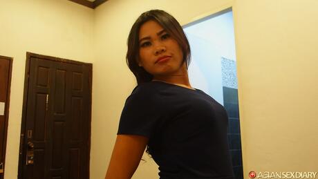 Asian Sex Diary: Super hot Asian babe Way shows her sexy booty in a hot striptease in a kitchen