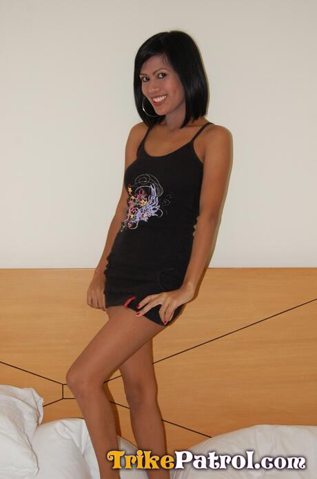 Trike Patrol: Super hot Asian maid Stella Malihan strips and toys her pussy in a solo