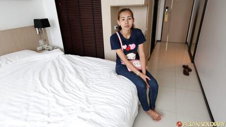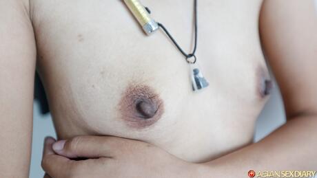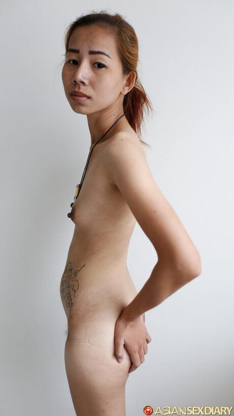 Asian Sex Diary: Super hot Asian May H. strips to her heels and shows her perfect butt and tits