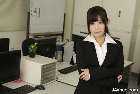 Jav Hub: Super hot Asian secretary Kurumi Chino strips to her heels & presents her sexy booty