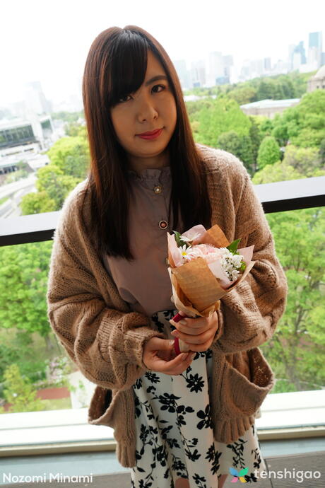 Tenshigao: Super hot Asian secretary Nozomi Minami strips off her clothes and exhibits nudity