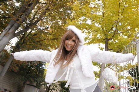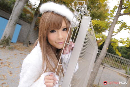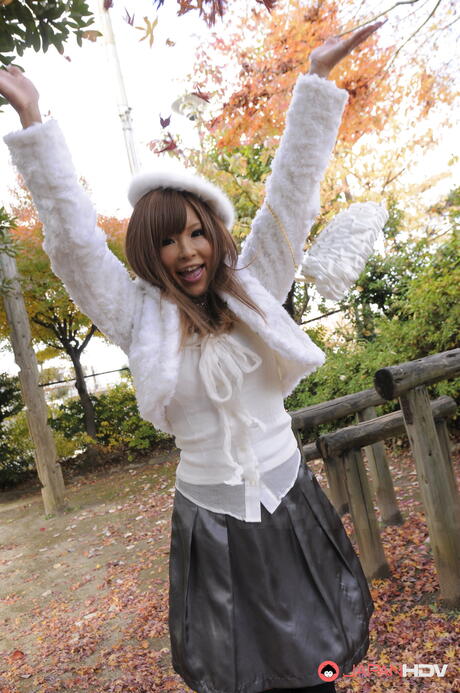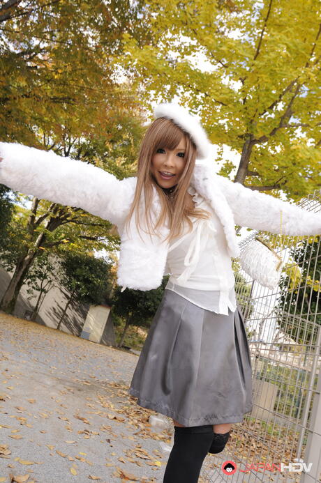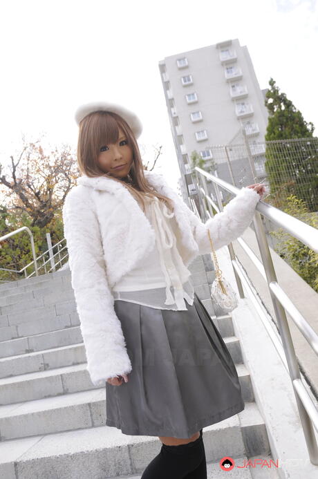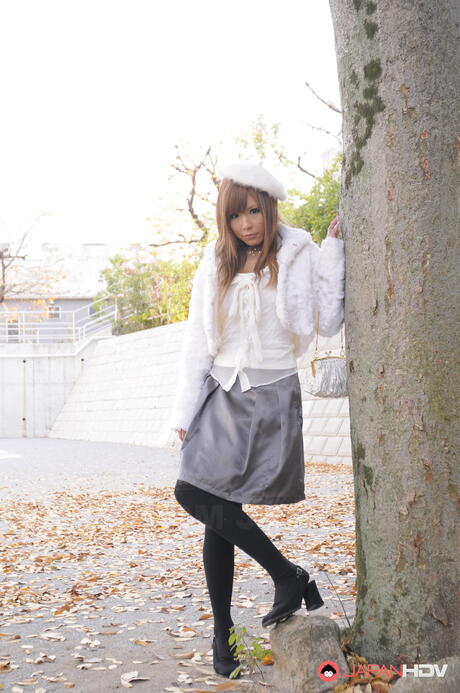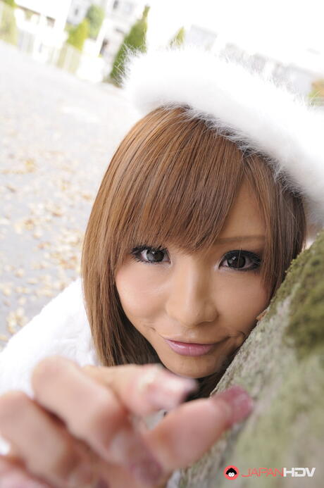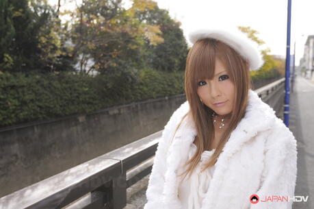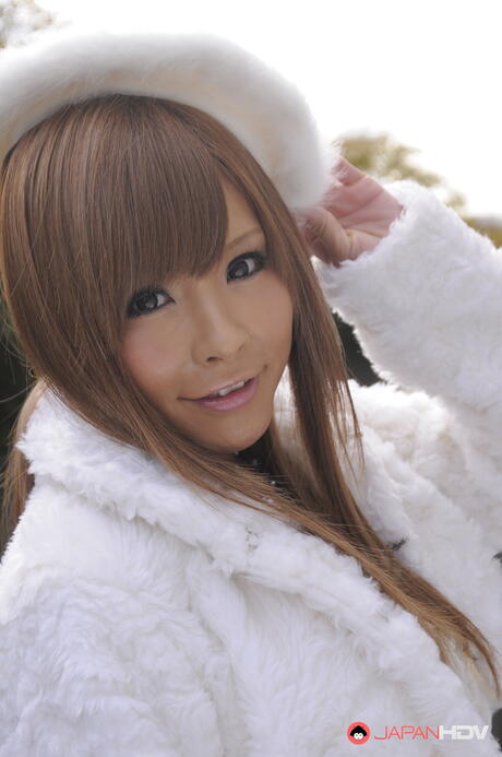 Japan HDV: Super hot Asian Tsubasa Miyashita strips off her winter coat and gloves outdoors