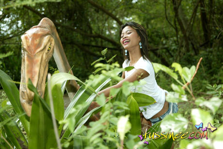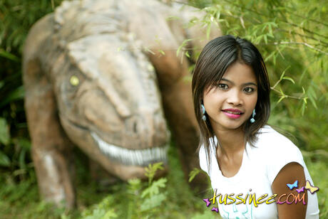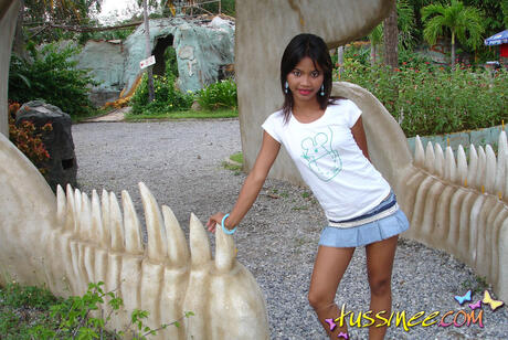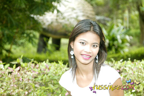 Tussinee: Super hot Asian Tussinee strips in the field and shows her sexy booty and tits