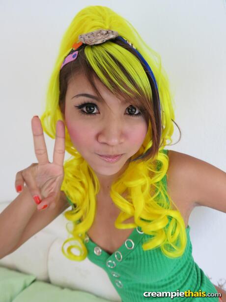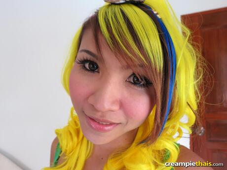 Creampie Thais: Super hot blonde with a sexy butt Lamai toys her pussy after stripping to her heels