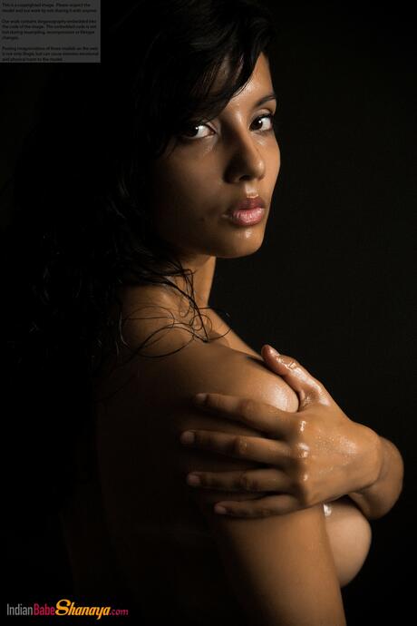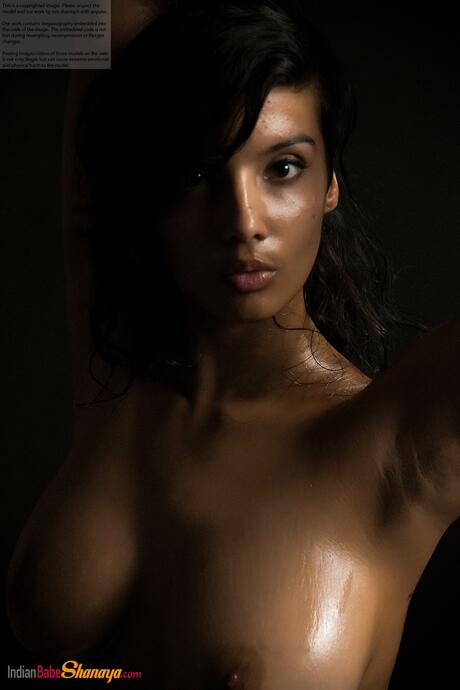 Indian Babe Shanaya: Super hot brunette Shanaya shows her big racks and poses in a solo striptease