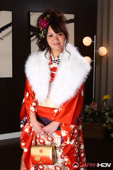 Japan HDV: Super hot Japanese babe Chihiro Nitta undresses and masturbates in a kimono