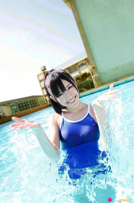 All Gravure: Super hot Japanese babe Mayu Watanabe exhibits her sexy butt and small tits poolside