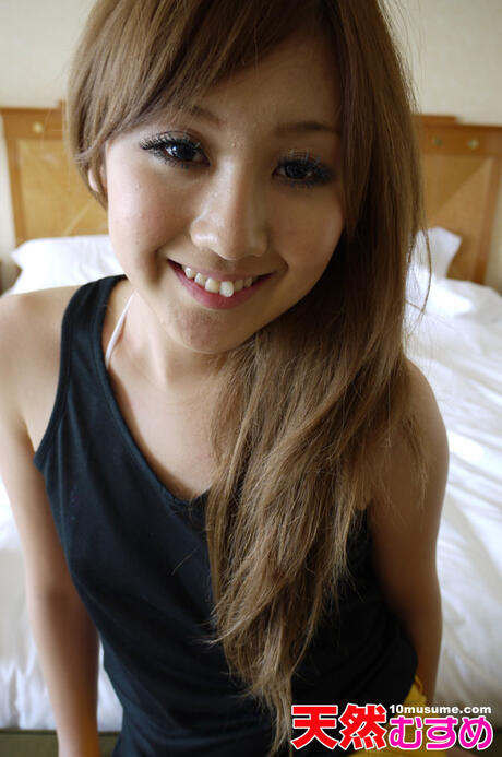 10musume: Super hot Japanese babe Shiroto Yuki toying her hairy cunt and riding a dildo
