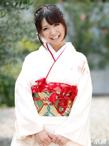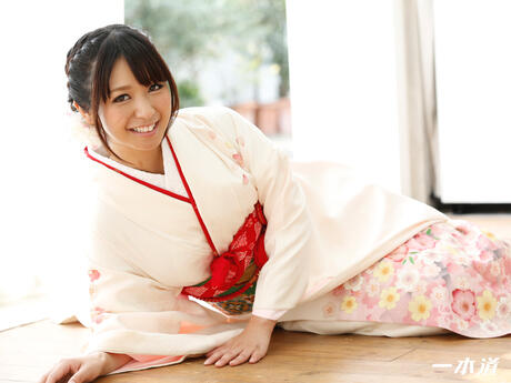 1Pondo: Super hot Japanese bride Wakaba Onoue strips her kimono and shows her hairy cunt