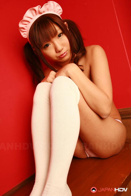 Japan HDV: Super hot Japanese maid Mahiru Tsubaki strips and reveals her small tits and ass