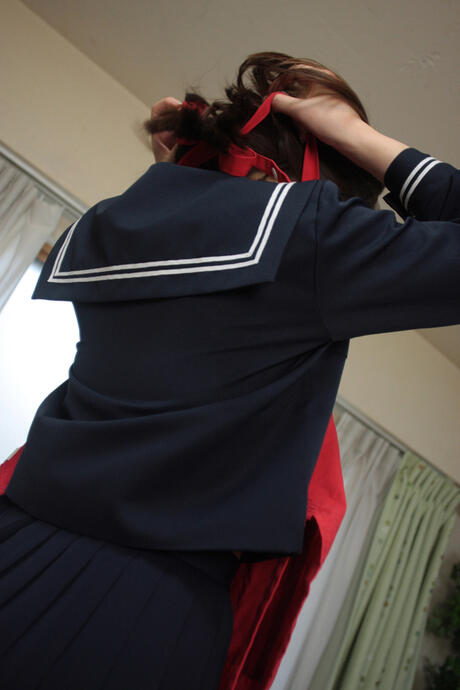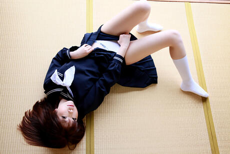 All Gravure: Super hot schoolgirl Higurashi Rin strips her sailor collar & pantyhose on the bed