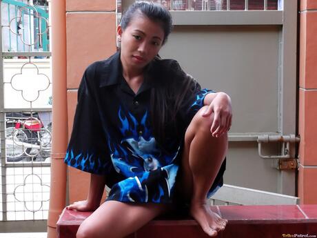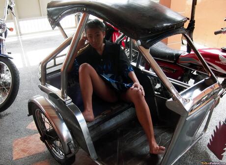 Trike Patrol: Superb Asian Ashley Jazmin strips naked and reveals her hot booty in a solo