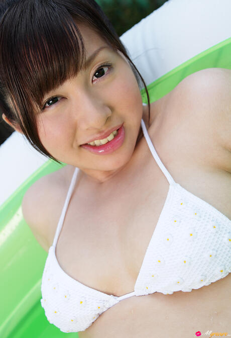 All Gravure: Superb Asian babe Asami Kiryu presents her big boobs and ass poolside