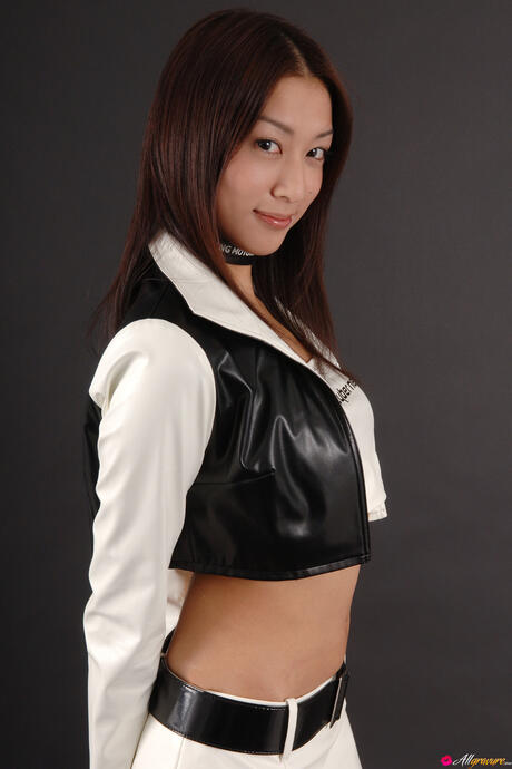 All Gravure: Superb Asian babe Ayano Tominaga highlights her hot ass in a black leather jacket