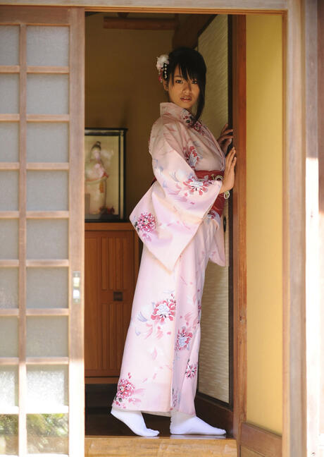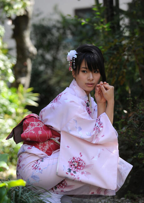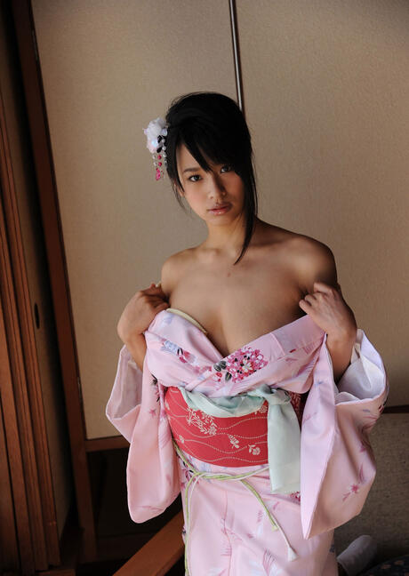 All Gravure: Superb Asian babe Hana Haruna takes off her kimono and shows her big racks