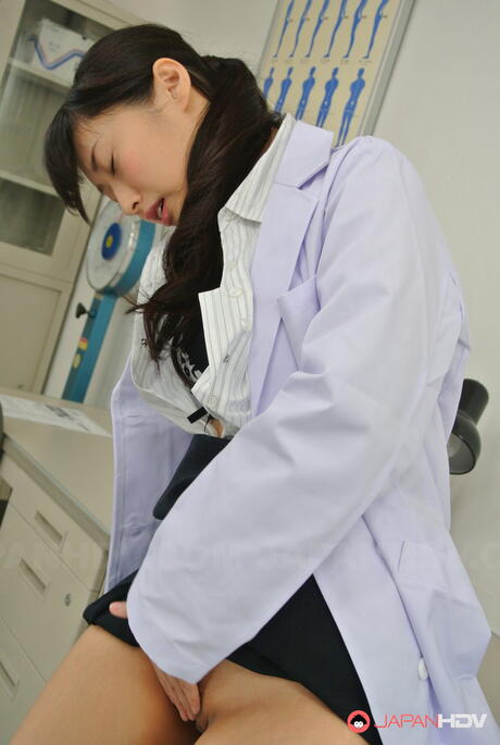 Japan HDV: Superb Asian doctor Tomomi Motozawa masturbates with a dildo in her office