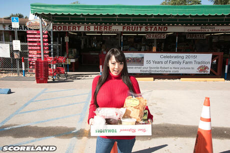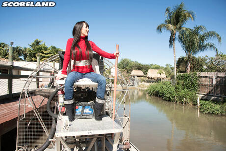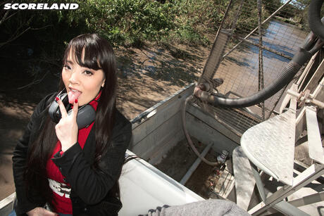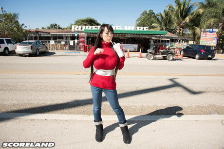 Score Land: Superb Asian Hitomi Tanaka shows her amazing melons and ass in a solo outdoors