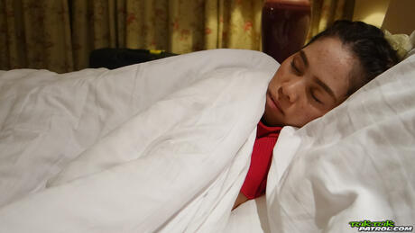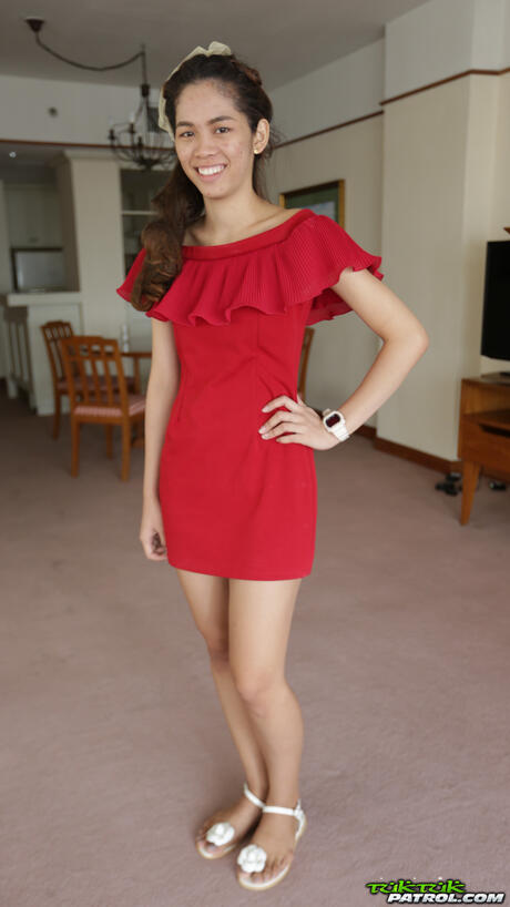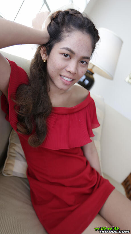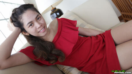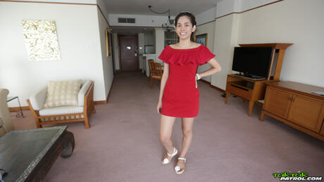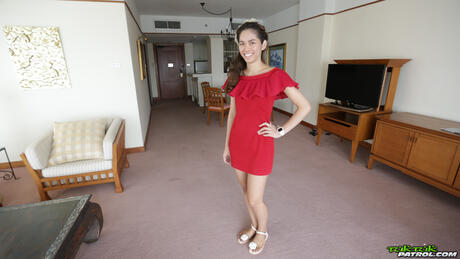 Tuk Tuk Patrol: Superb Asian Mee strips off her red dress and presents her perfect butt on a bed