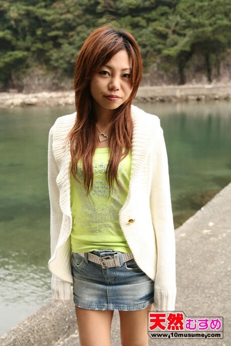 10musume: Superb Asian Riria takes off her denim skirt and shows her big juggs and ass