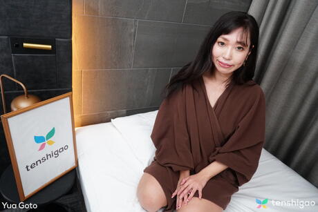 Tenshigao: Superb Asian Yua Goto doffs her black dress and pink panties to pose nude