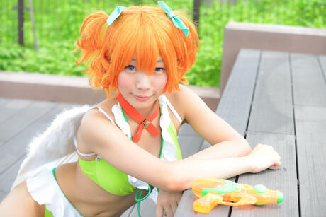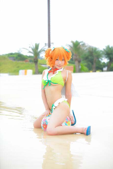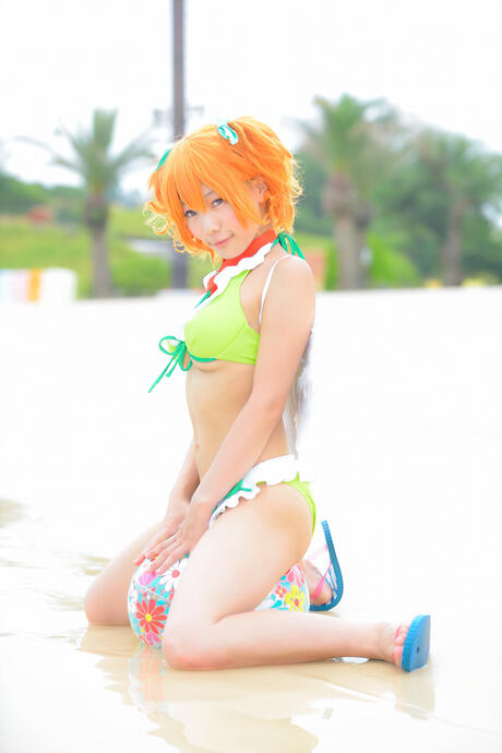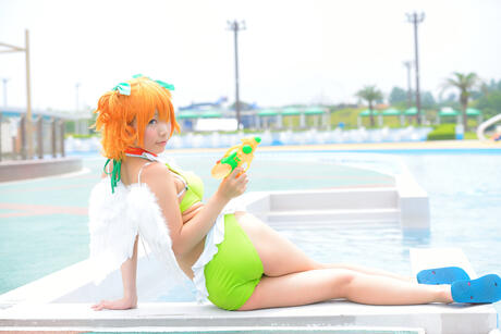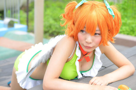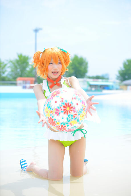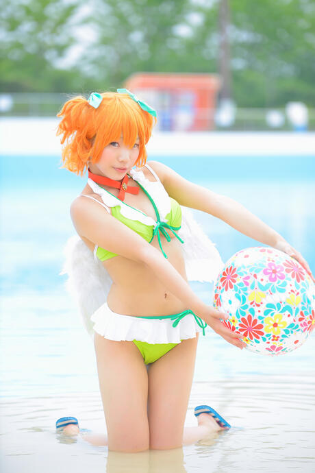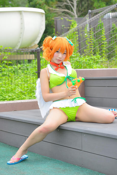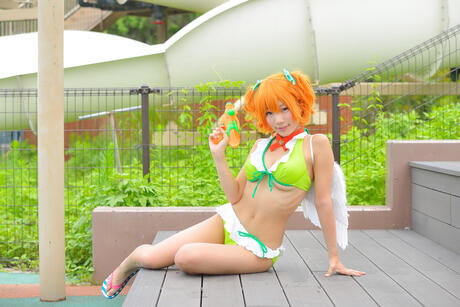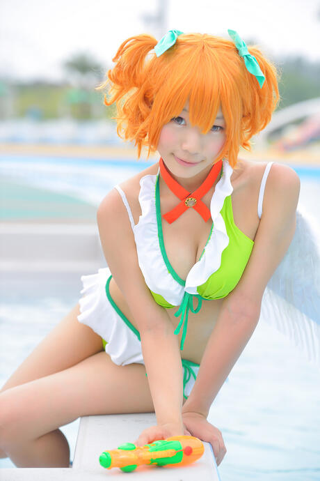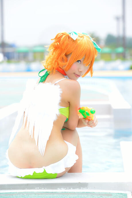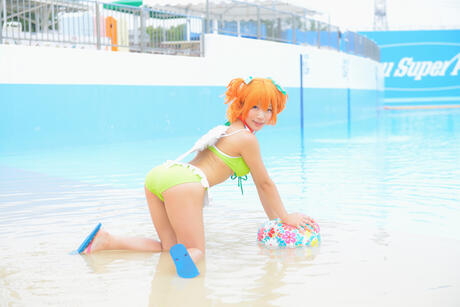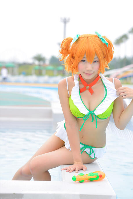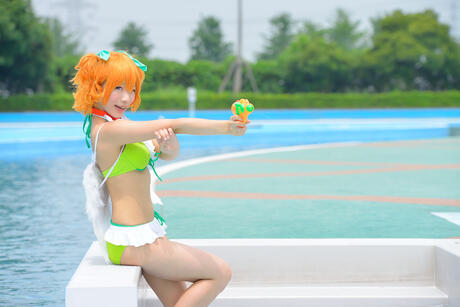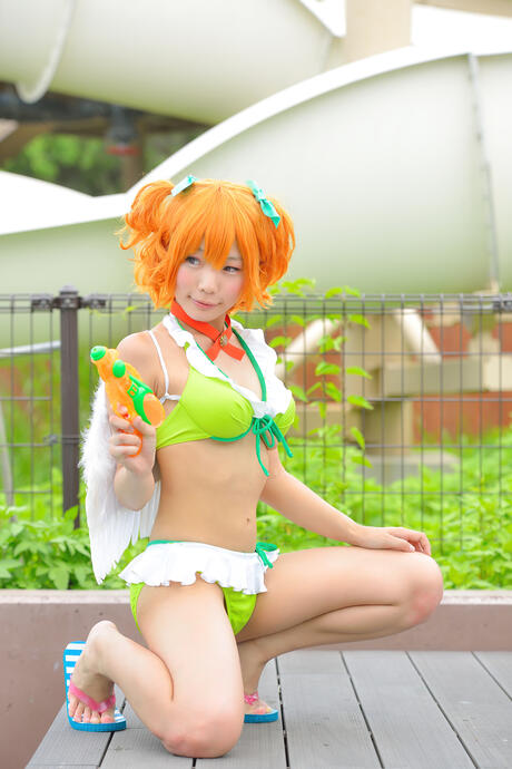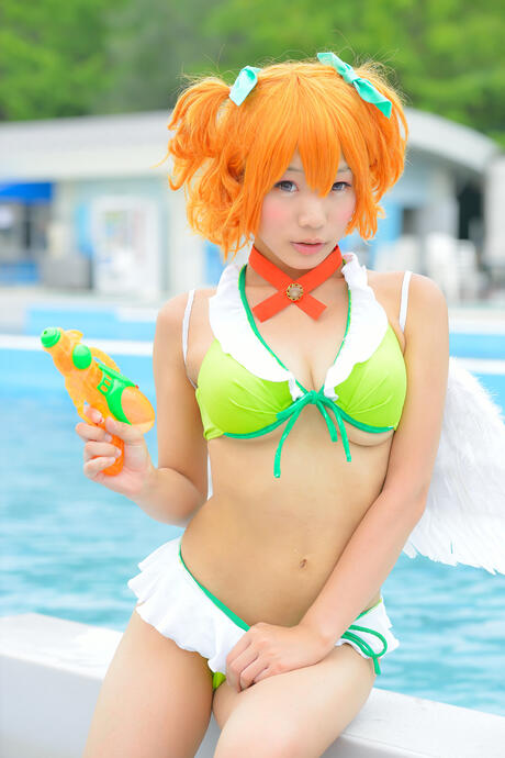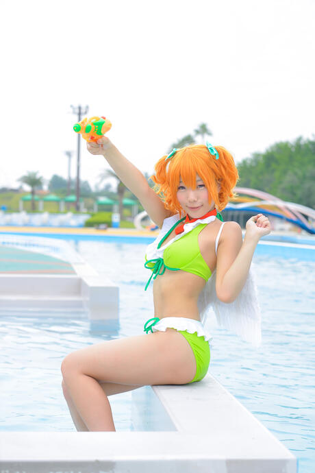 All Gravure: Superb blonde Kae Saikin exhibits her hot booty in a green bikini poolside