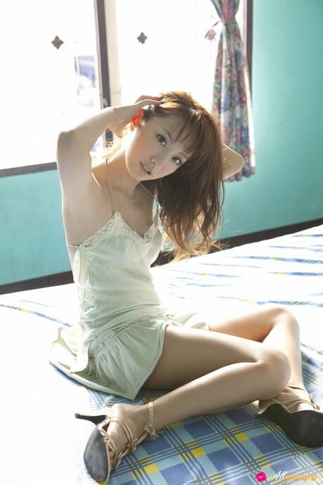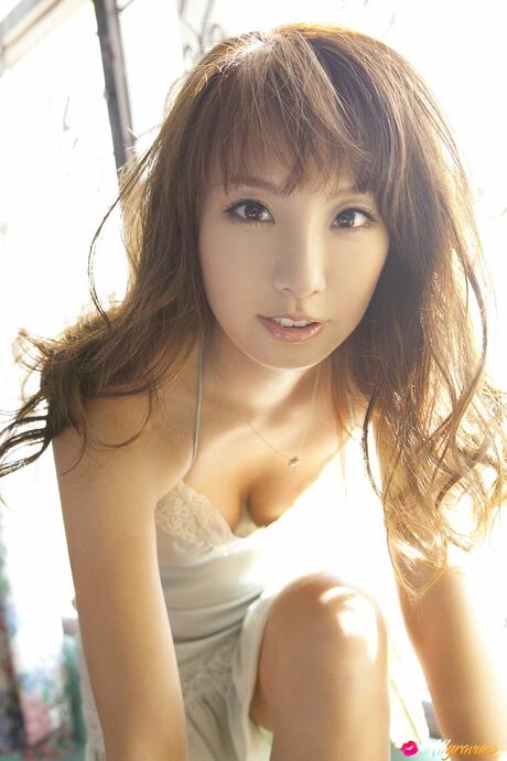 All Gravure: Superb Japanese babe with a big booty Azusa Yamamoto poses in a white dress