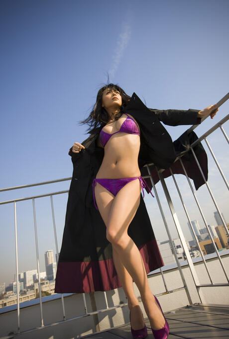 All Gravure: Superb Japanese cougar Yukie Kawamura highlights her big booty in a purple bikini