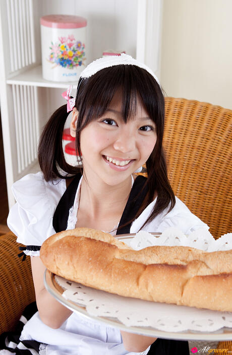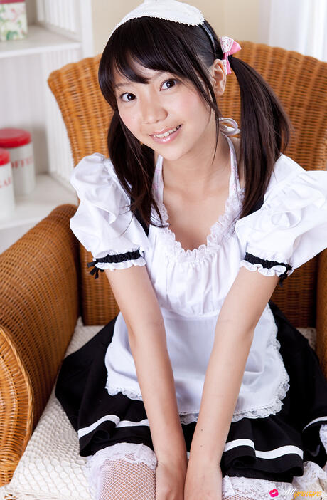 All Gravure: Superb maid Fuuka Nishihama strips & poses in her fishnet dress & apron