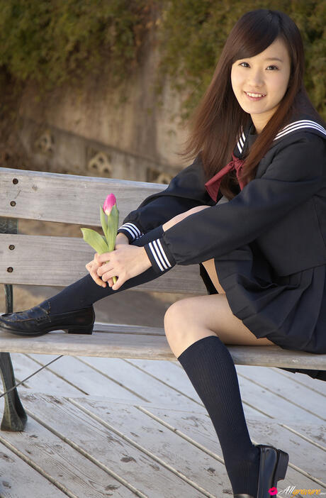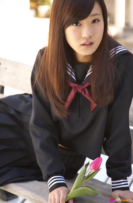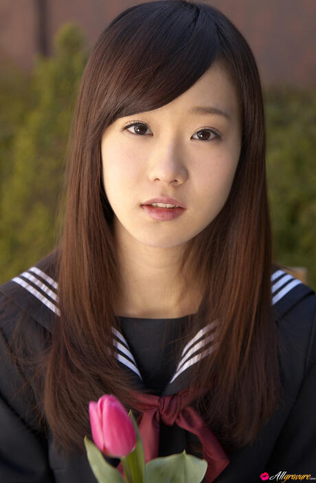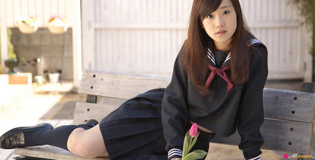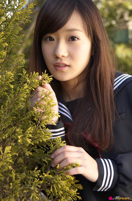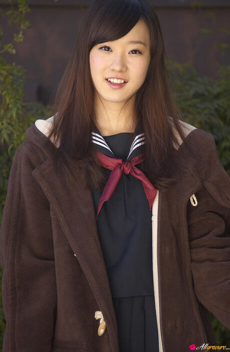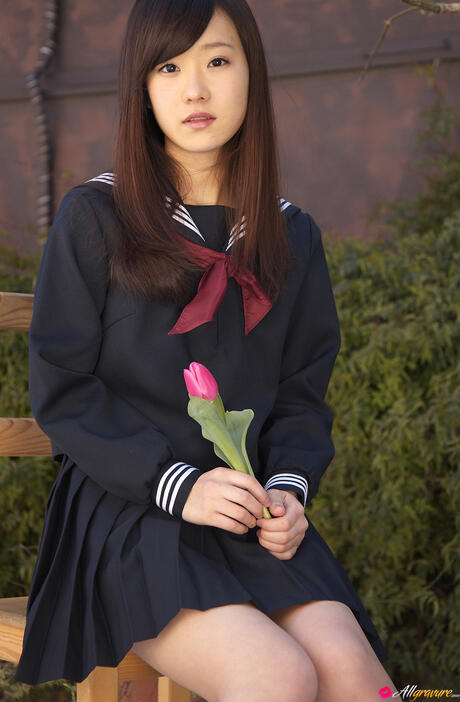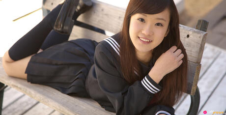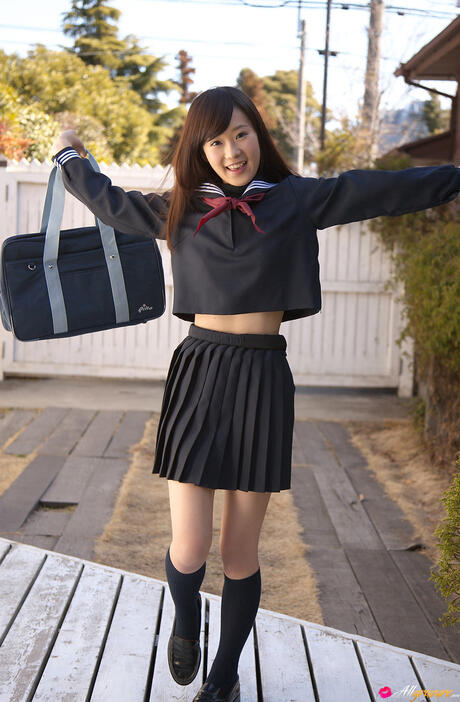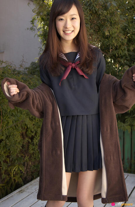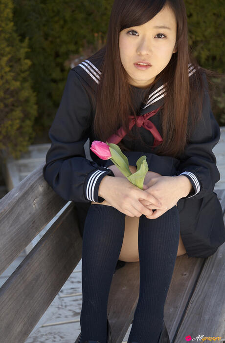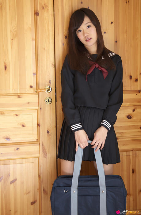 All Gravure: Sweet schoolgirl Kana Yuuki strips and unveils her tiny tits and pussy