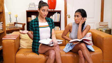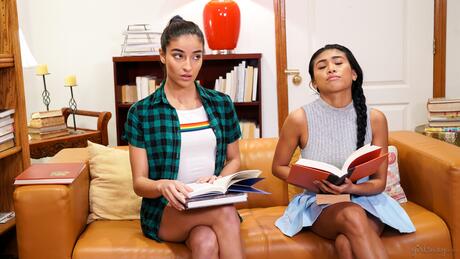 Body Swap: Teen girls Emily Willis and Ember Snow have lesbian sex in a kitchen