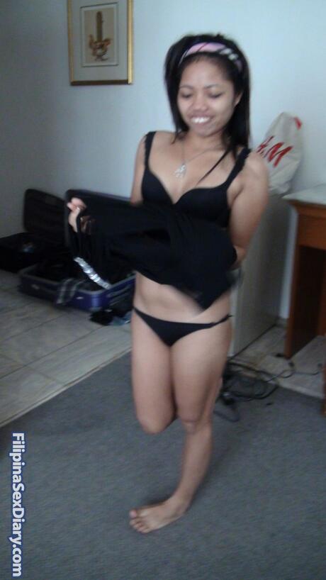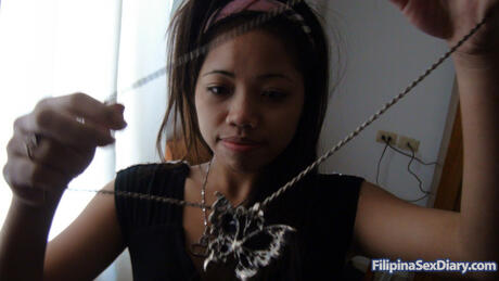 Asian Sex Diary: Tempting teen Floramie strips off her black dress and highlights her hairy cunt