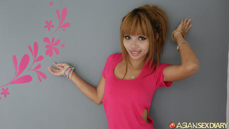 Asian Sex Diary: Tempting teen Mint takes off her pink bikini and reveals her hot body in a solo