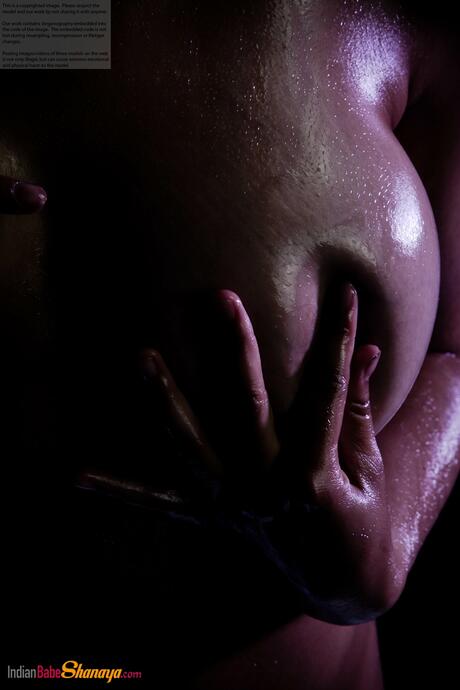 Indian Babe Shanaya: Tempting teen Shanaya strips to her latex gloves and hat and masturbates