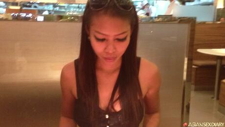 Asian Sex Diary: The Asian babe Kat takes off her clothes and fingers her pussy on a table